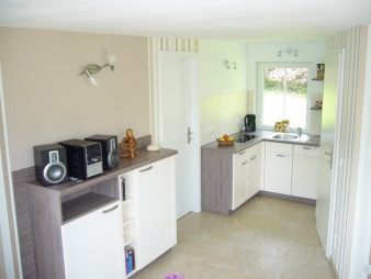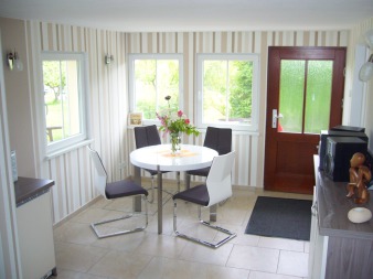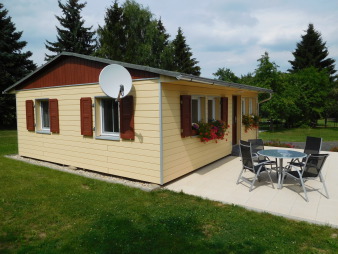 zur Verfügung. Das Ferienhaus ist aufgrund der vorhandenen Gasheizung in Kombination mit einer, auf der gesamten Wohnfläche verbauten Fußbodenheizung, das gesamte Jahr über nutzbar. Vor dem Bungalow bietet eine ca. 30 qm große Terasse Platz zum Sonnenbaden, Grillen